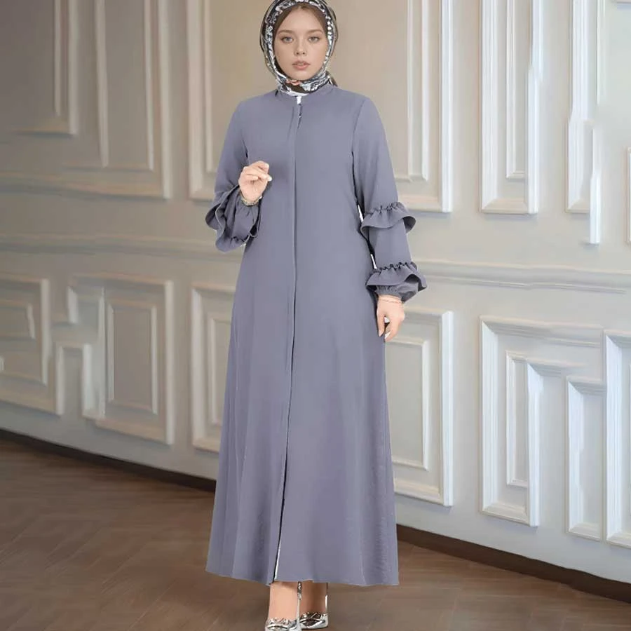 Stylish ferace with ruffled sleeves and hidden zipper, suitable for casual or semi-formal wear