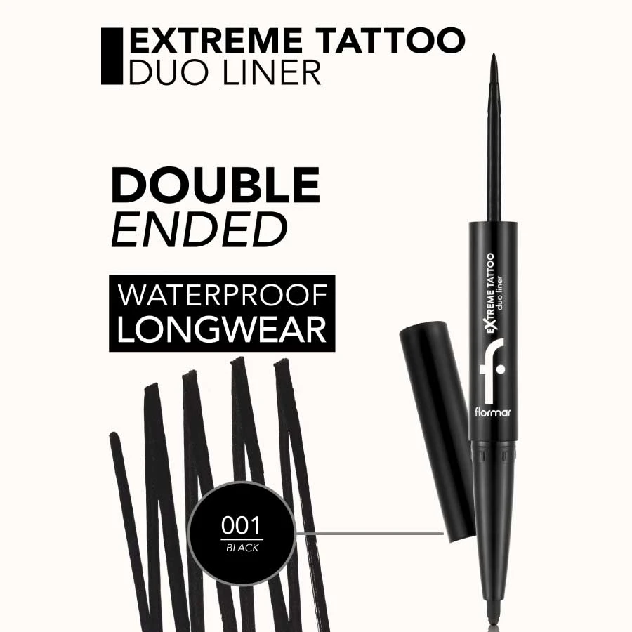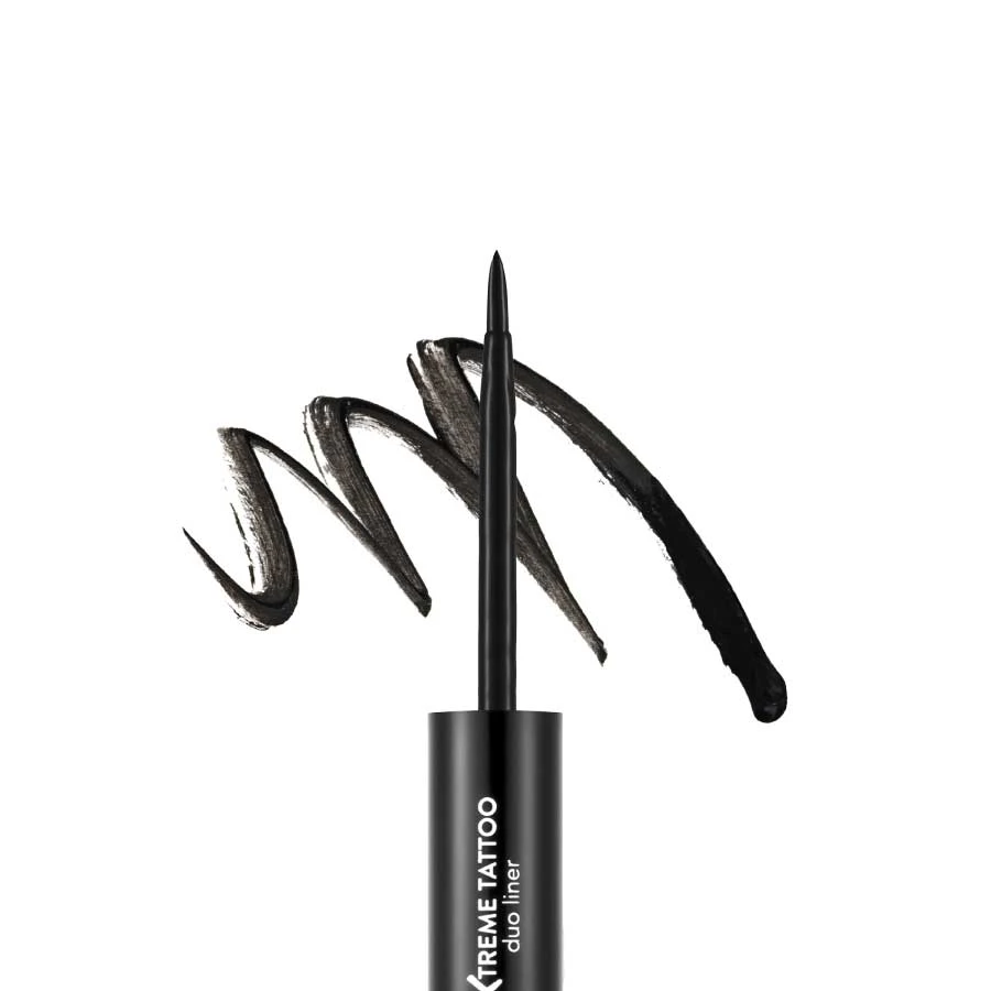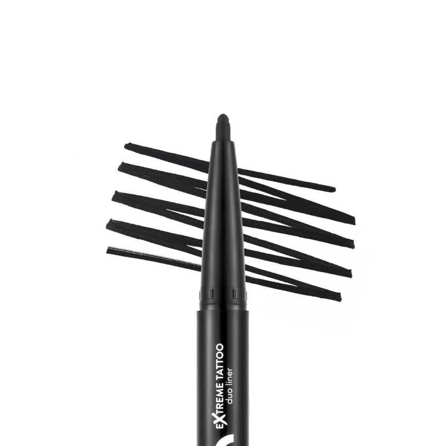 يجمع إكستريم تاتو ديو لاينر بين الكحل السائل وقلم العيون مع رفع في منتج واحد بفضل تصميمه ثنائي الجوانب. بفضل تركيبته طويلة الأمد المقاومة للماء والمقاومة للتلطخ، يمنحكِ مظهرًا فريدًا طوال اليوم.