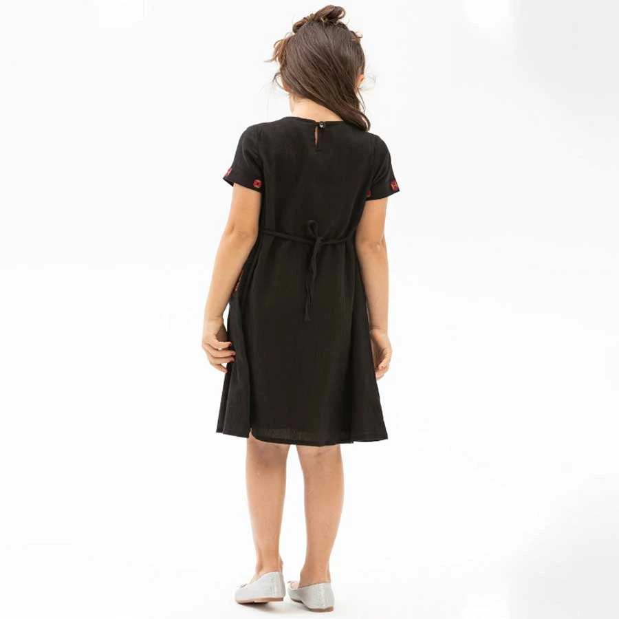 A stylish black Şile cloth summer dress for children — light, breathable, and elegant for sunny days