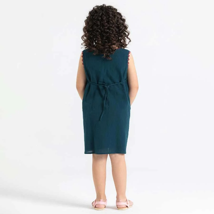 A charming Şile fabric summer dress for girls in deep petrol blue — soft, breezy, and ideal for warm days
