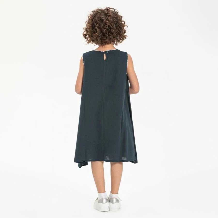 Petrol-colored summer dress for girls, made from breathable Şile cloth with a comfortable fit