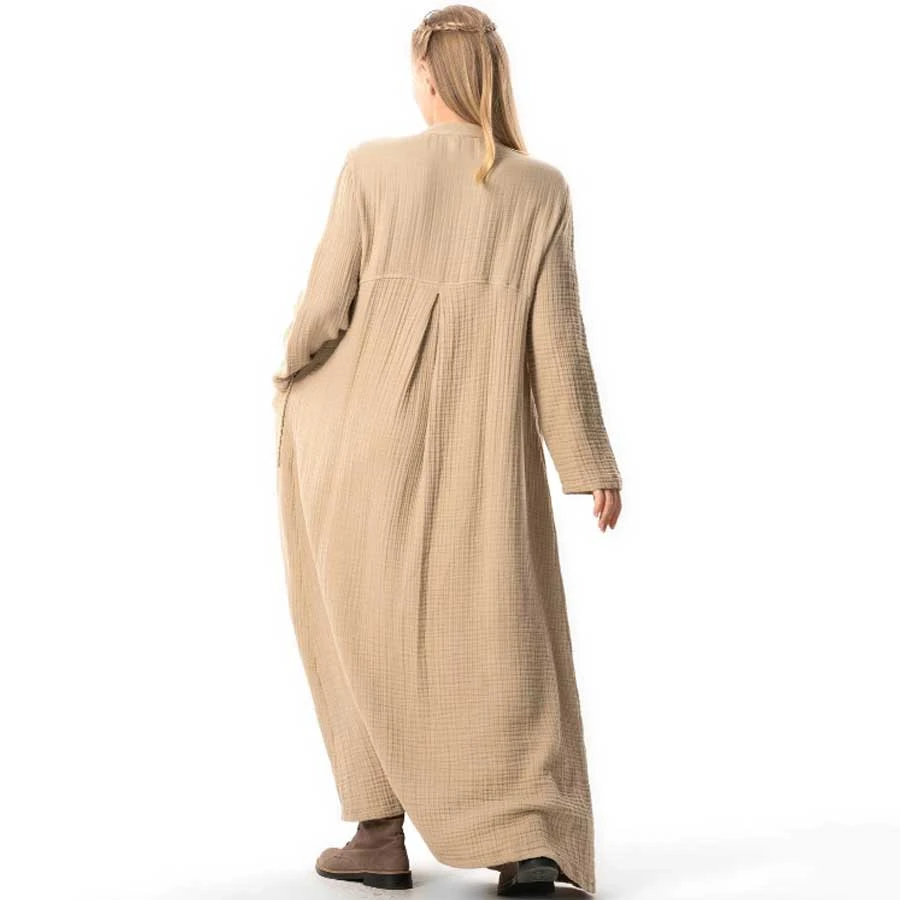 Elegant autumn and winter ferace featuring a hakim collar, button detailing, and side pockets. Crafted from premium muslin fabric for warmth and comfort. Free shipping included