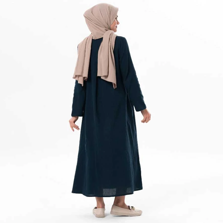 Comfortable large-size ferace crafted from lightweight Şile cloth, featuring a convenient front zipper for easy wear