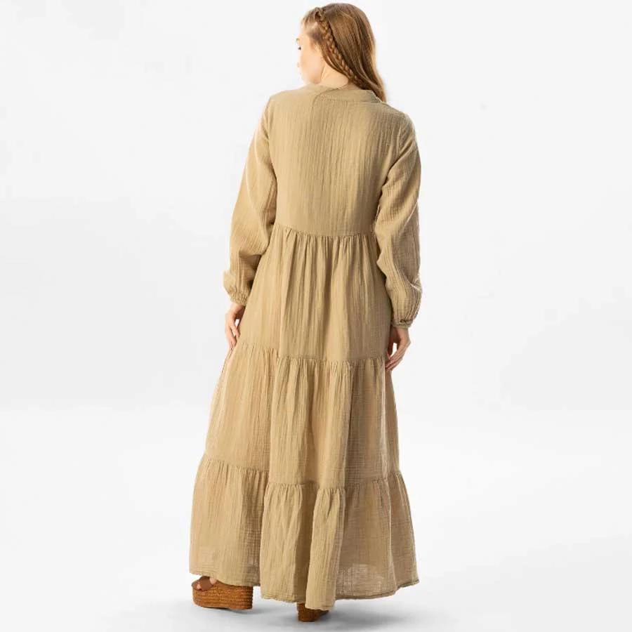 Long-sleeve seasonal ferace made from soft muslin fabric in a mink shade. Features a comfortable fit suitable for everyday wear