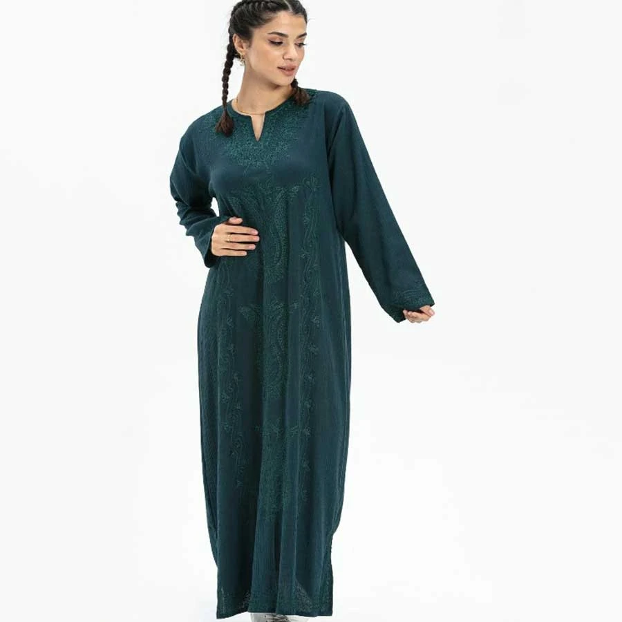 Stylish midi-length summer kaftan crafted from breathable Şile cloth with glitter accents. Long sleeves offer modesty while keeping it light and comfortable for warm weather