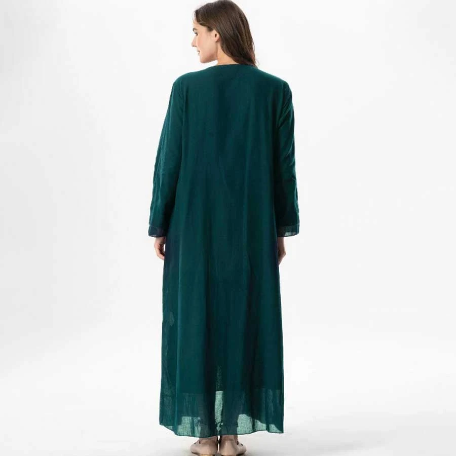 Breathable and lightweight summer ferace in petrol color, crafted from voile Shile cloth with ribbed detailing. Long sleeves offer modest coverage and comfort for warm weather