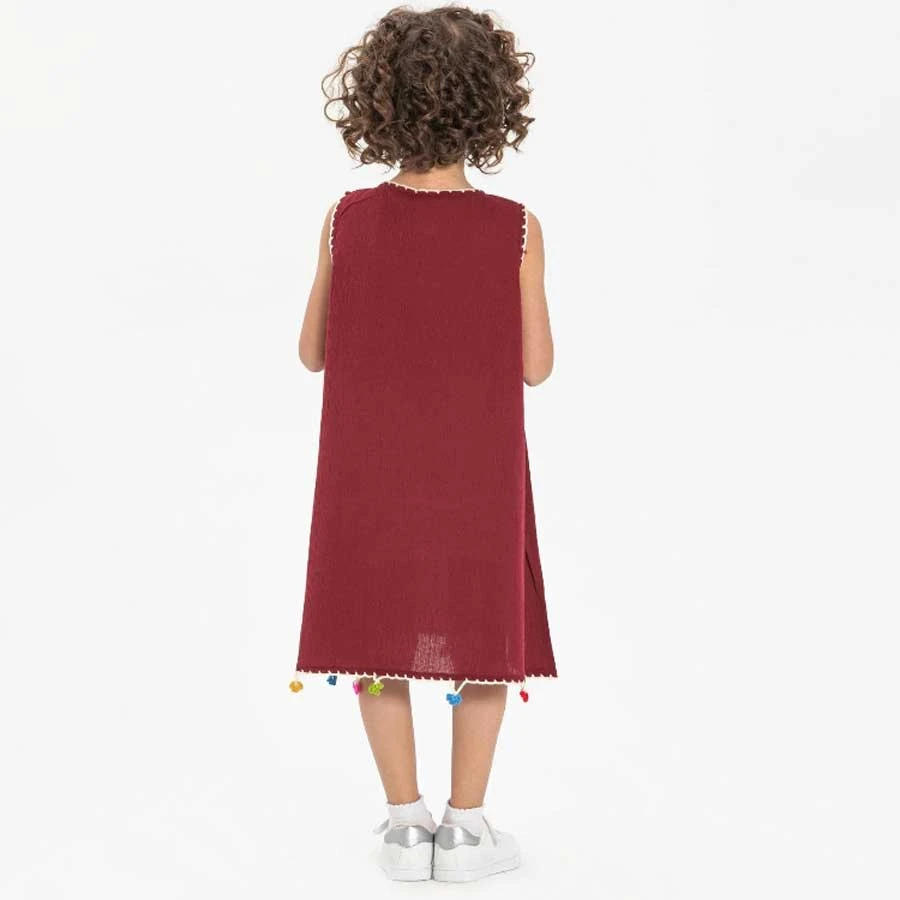 A breathable Şile cloth summer dress for children in rich claret red — perfect for warm weather