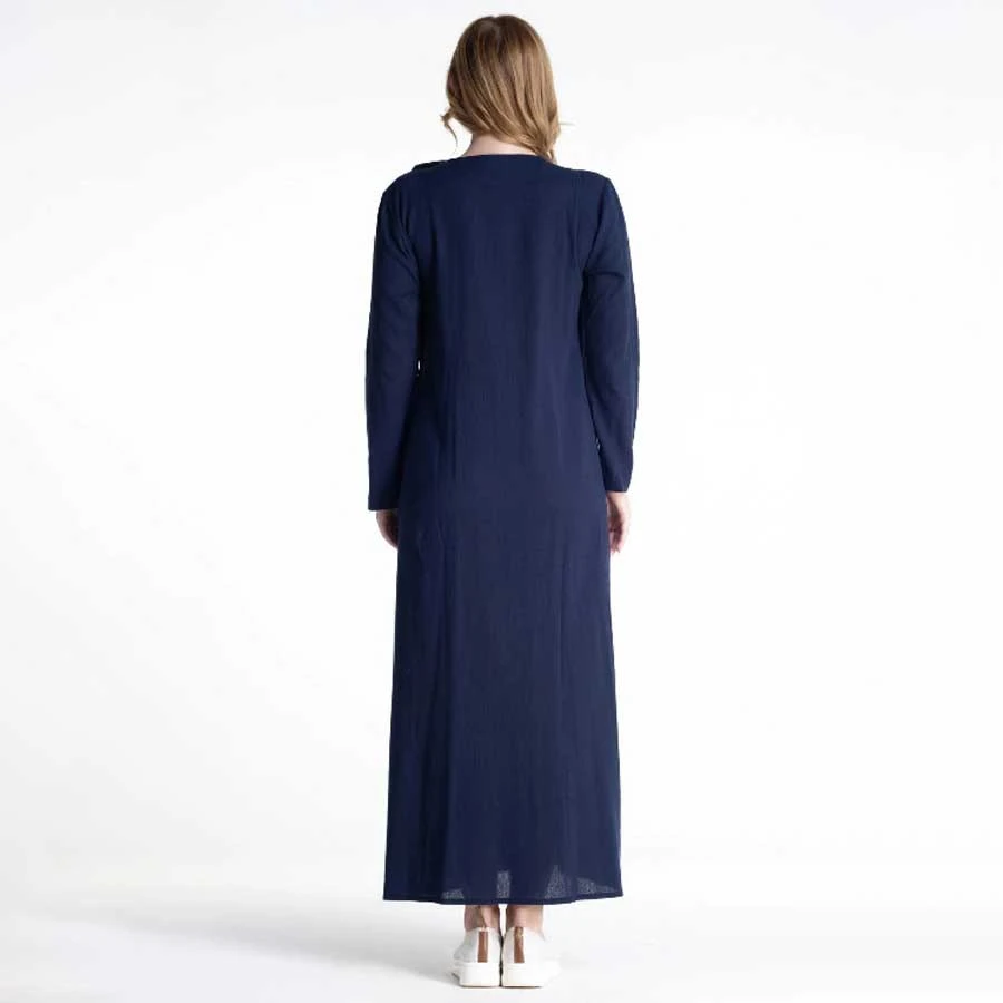 A stylish and airy ferace made from high-quality Şile Bezi cotton, designed for warm seasons. Its natural, breathable fabric ensures comfort and elegance with every wear. The navy-blue tone adds a refined touch suitable for both daily and casual outings