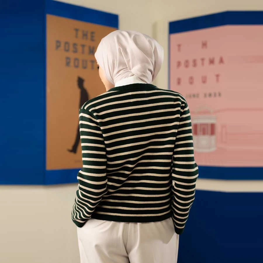 Cozy striped cardigan in Garden Topiary, perfect for layering in style