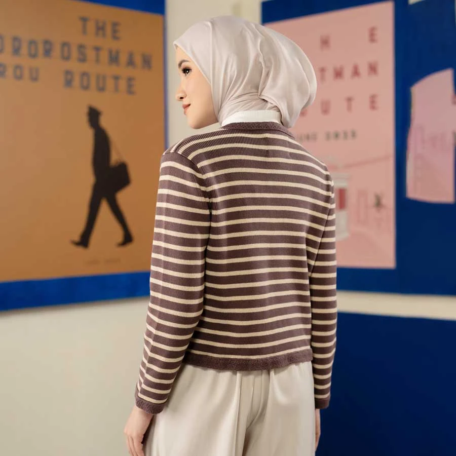 Elegant striped cardigan in Twilight Mauve, perfect for layering