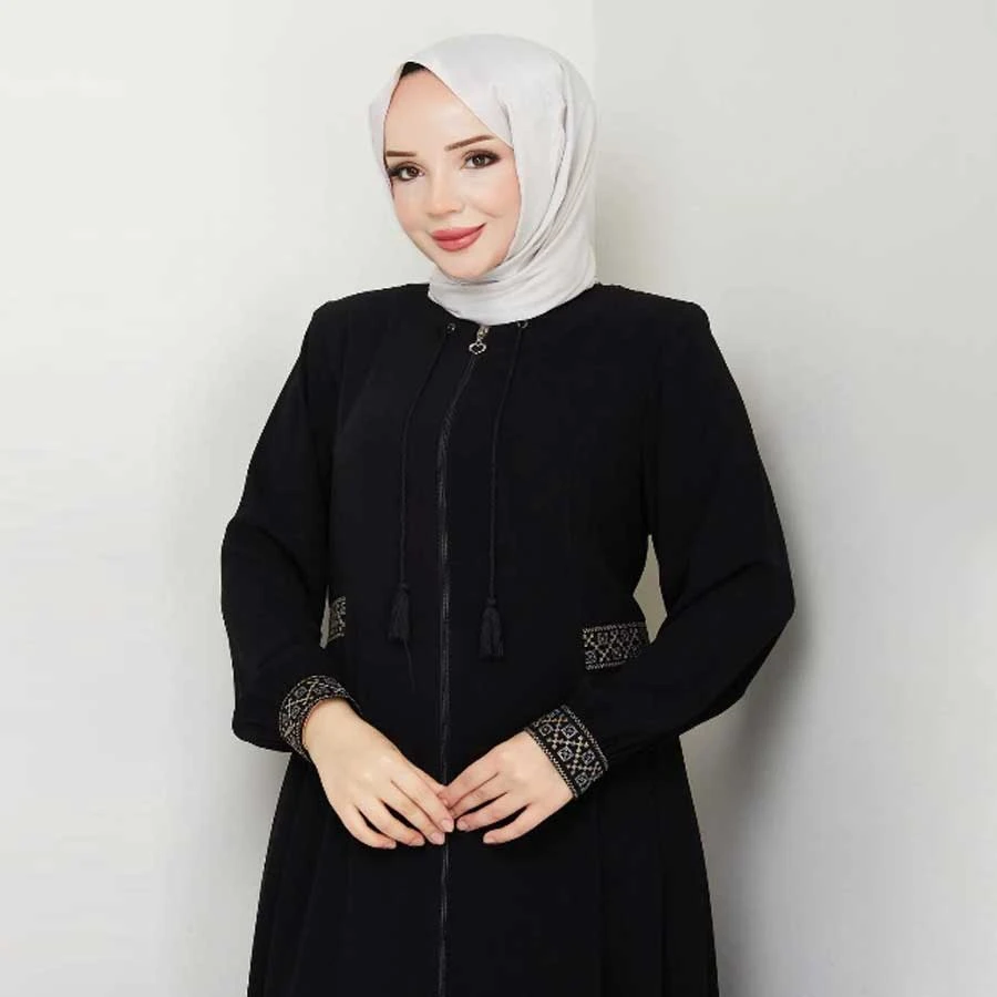 Elegant ferace with embroidery and lace details, perfect for daily wear or special occasions