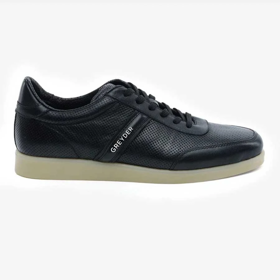 Greyder Men’s Black Genuine Leather Sneaker Shoes