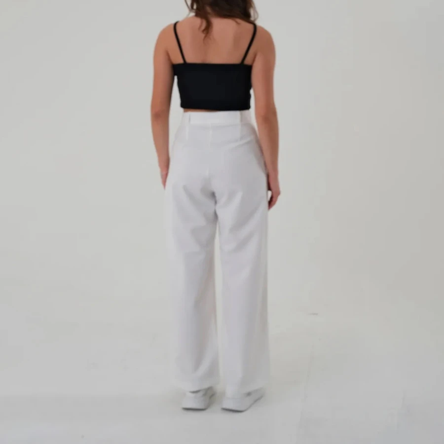 • بنطلون نسائي واسع الساق بخصر عالٍ، خفيف الوزن وجيد التهوية، مثالي للطقس الدافئ. يتميز بحزام خصر مطاطي لمزيد من الراحة. متعدد الاستخدامات للمناسبات الرسمية وغير الرسمية؛ يمكن تنسيقه مع تيشيرت أو بلوزة أو جاكيت لإطلالة أنيقة.