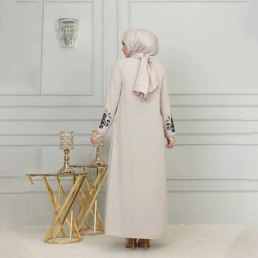 ISTANBUL STYLES Crepe Fabric Embroidered Zippered Large Size Ferace
