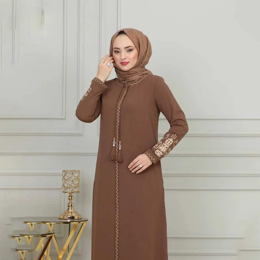 ISTANBUL STYLES Crepe Fabric Embroidered Zippered Large Size Ferace