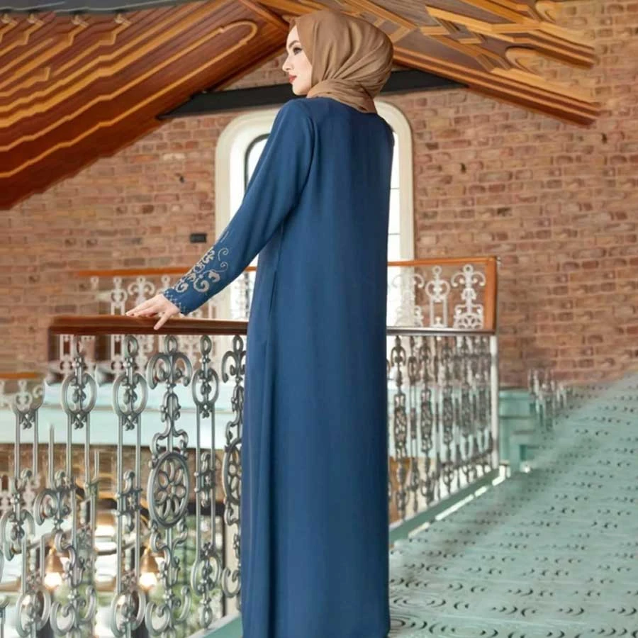 An elegant Turkish ferace crafted from soft crepe fabric, designed with intricate embroidery and a smooth front zipper for comfort and sophistication