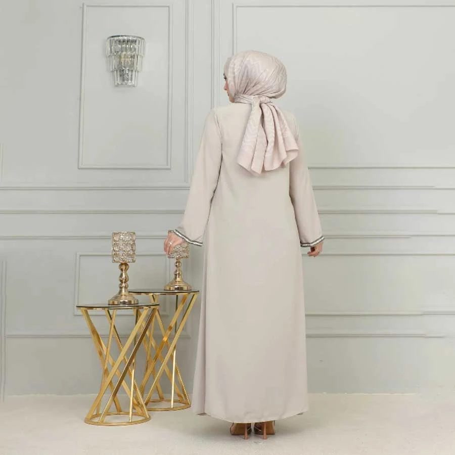 ISTANBUL STYLES Stone Detailed Long Zippered Ferace