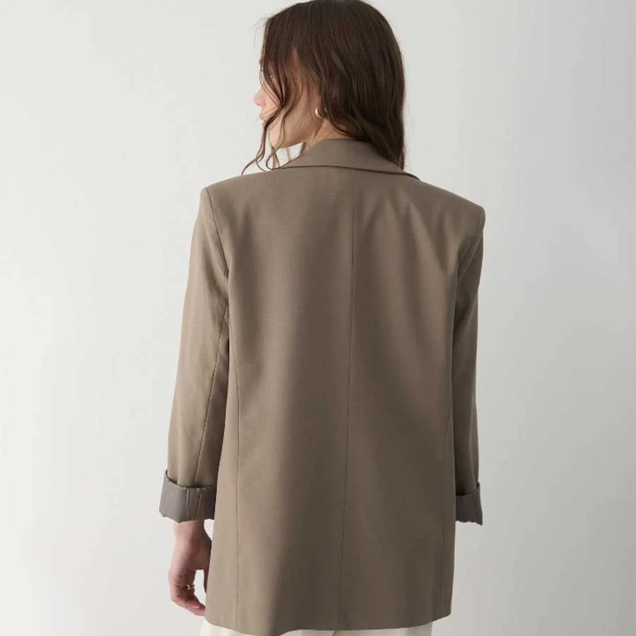 Khaki blazer jacket for women featuring striped lined sleeves and detailed design, suitable for stylish and professional looks
