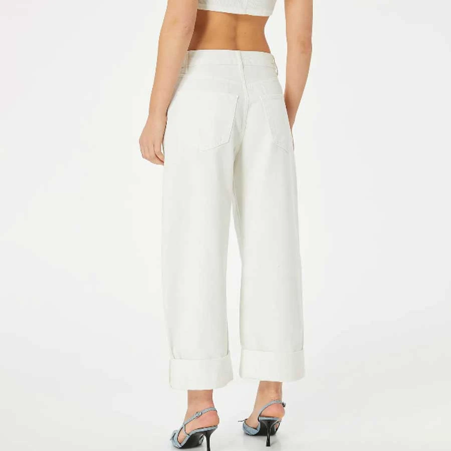 High-waist straight-leg jeans with layered design and functional pockets, offering a stylish and comfortable fit for casual everyday wear