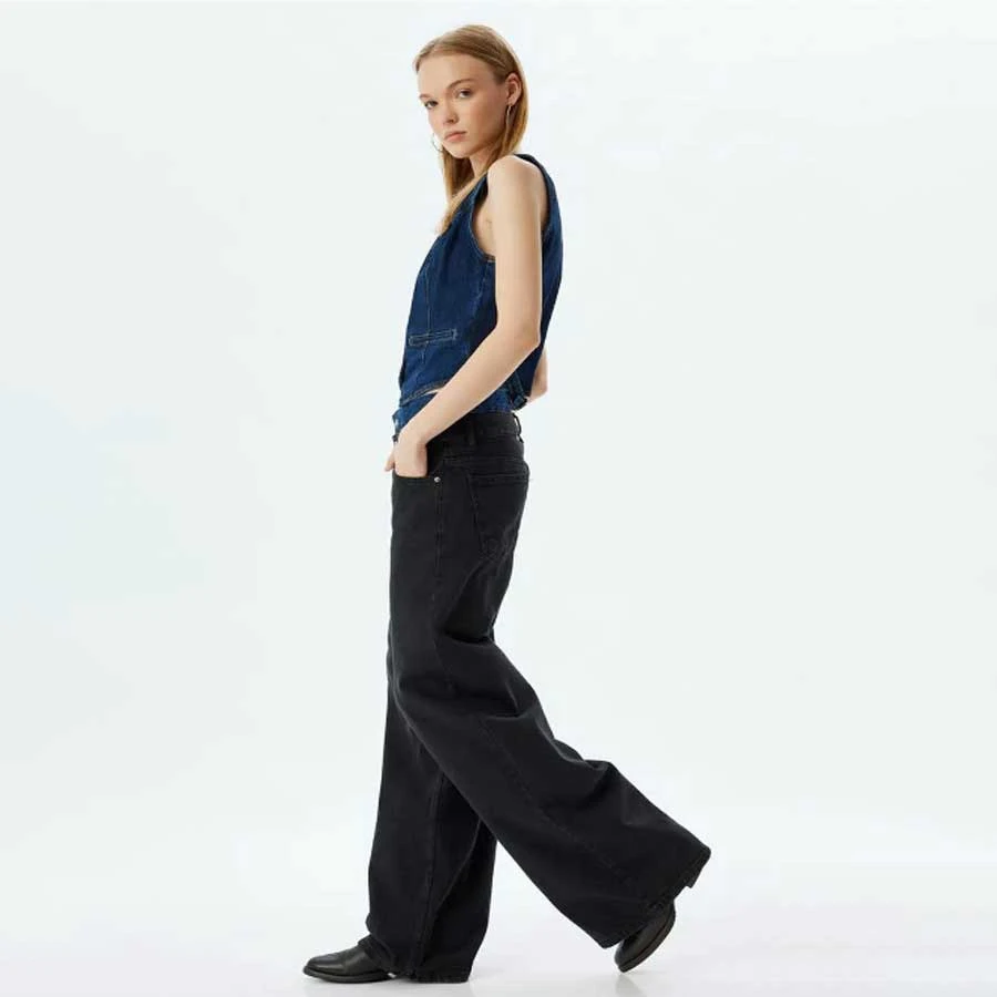 Koton Loose Fit Jeans with Double Waist Detail and Buttons - Loose Straight Fit Jean