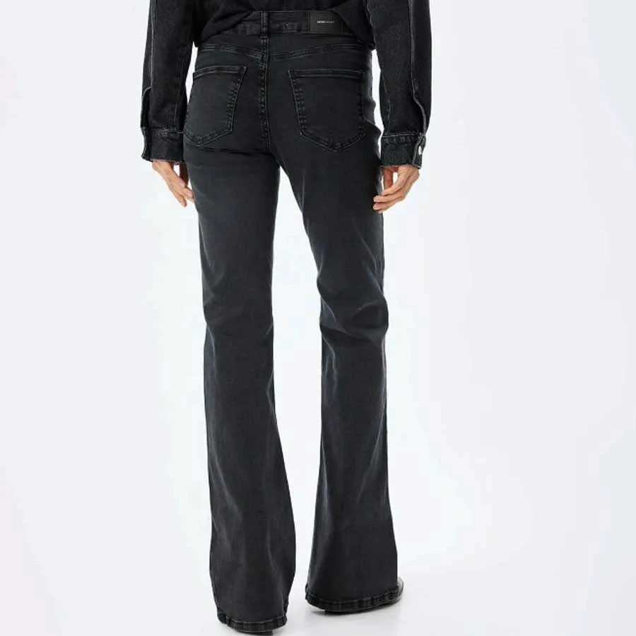 Flared black women’s jeans with a high waist, offering a comfortable fit and a stylish look suitable for casual and everyday wear