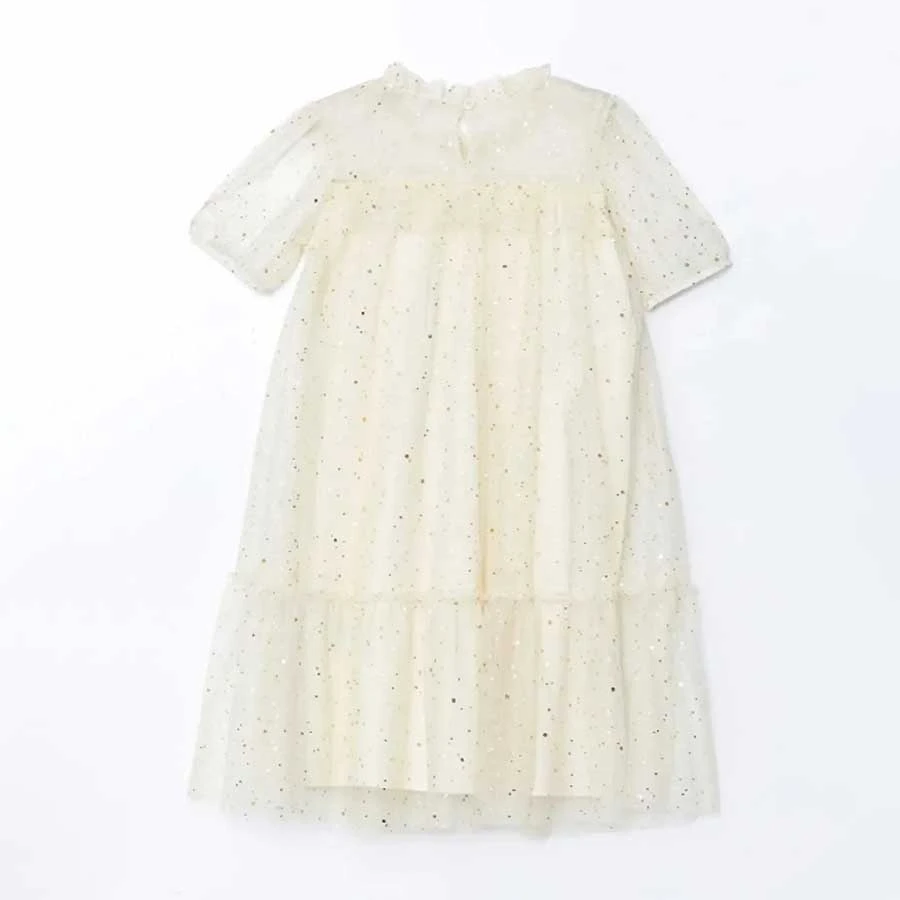 LC Waikiki – Ecru Crew Neck Sparkle Girl’s Dress