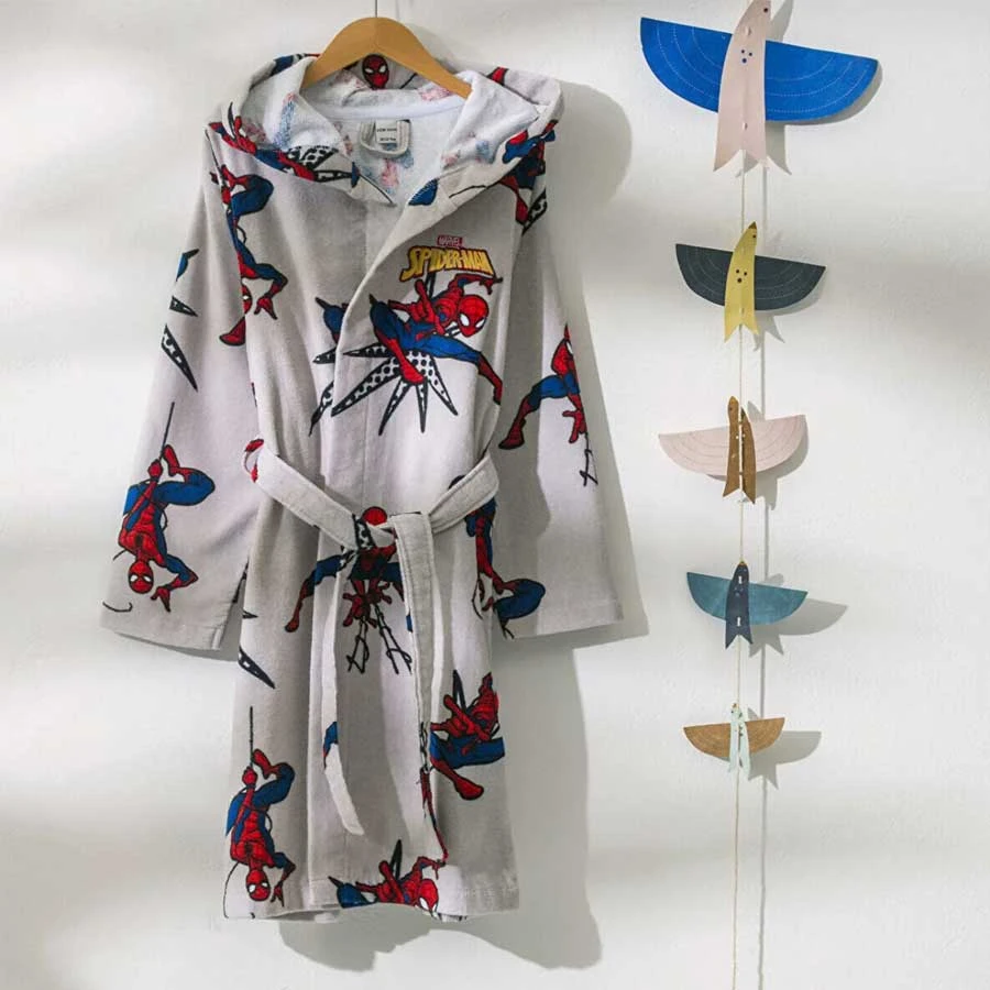 Fun and comfy Spider-Man printed bathrobe, perfect for young Marvel fans