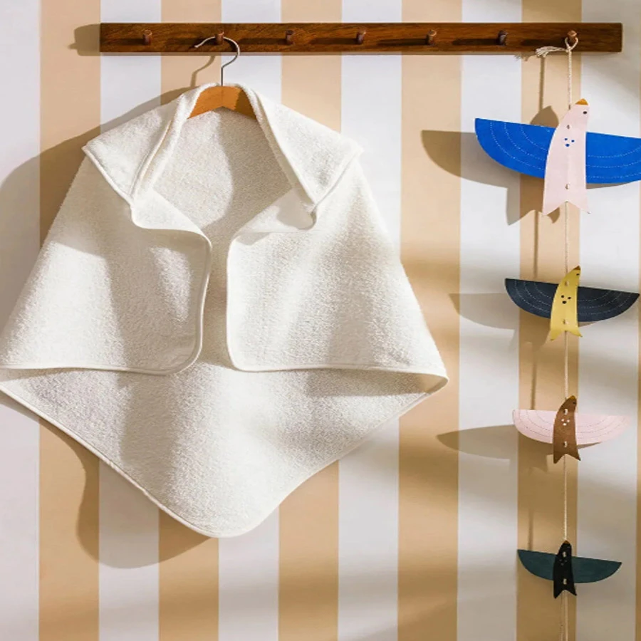 Adorable beige bathrobe with teddy bear embroidery, perfect for keeping your baby warm and comfy after bath time