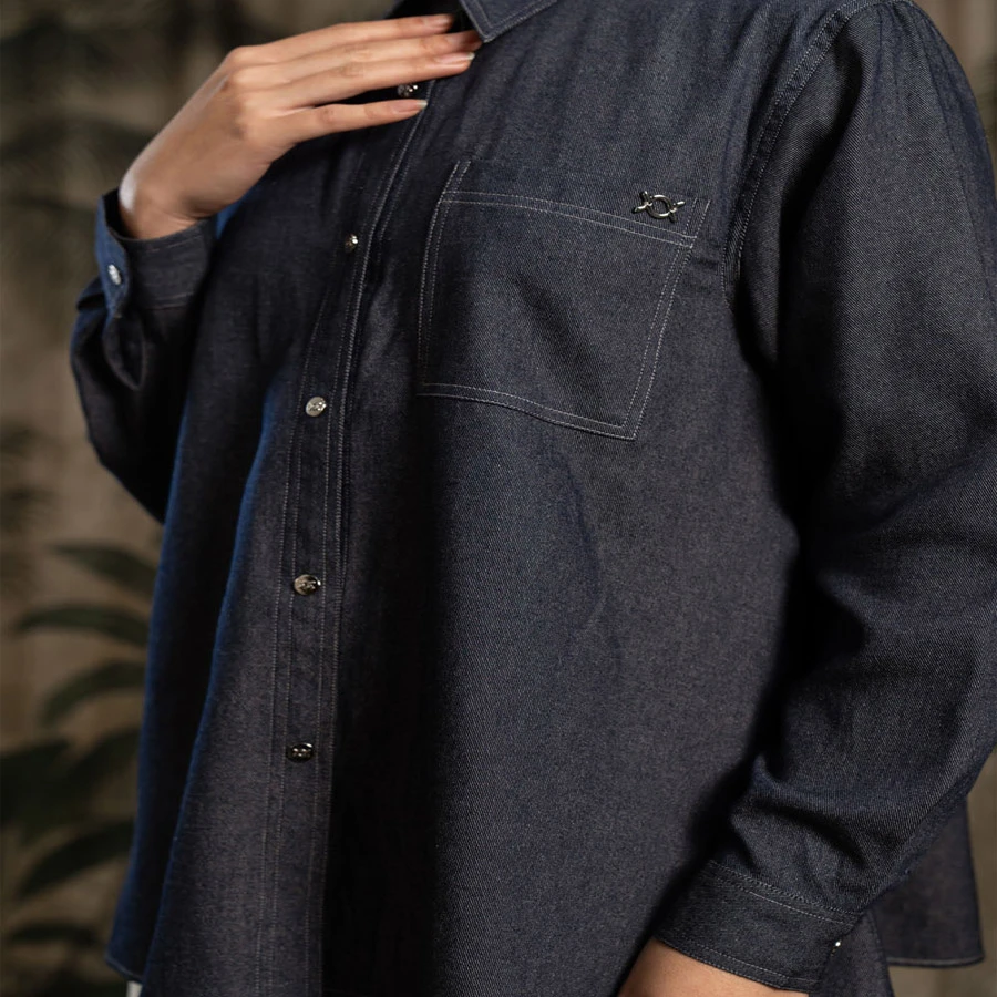 Elegant long-sleeve shirt in Insignia shade, tailored with a clean silhouette and versatile design, perfect for both workwear and casual styling
