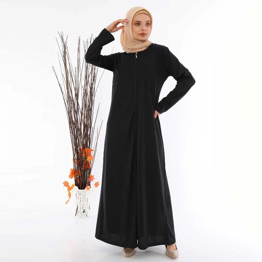 Women’s black prayer dress with a zipper from Medipek, offering modest coverage and comfortable wear
