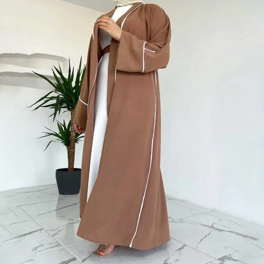 Elegant abaya with side piping detail, suitable for daily wear and special occasions