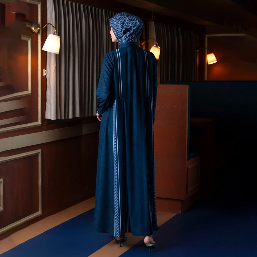 Elegant flowy dress in Blue Pansy, perfect for a graceful and chic look