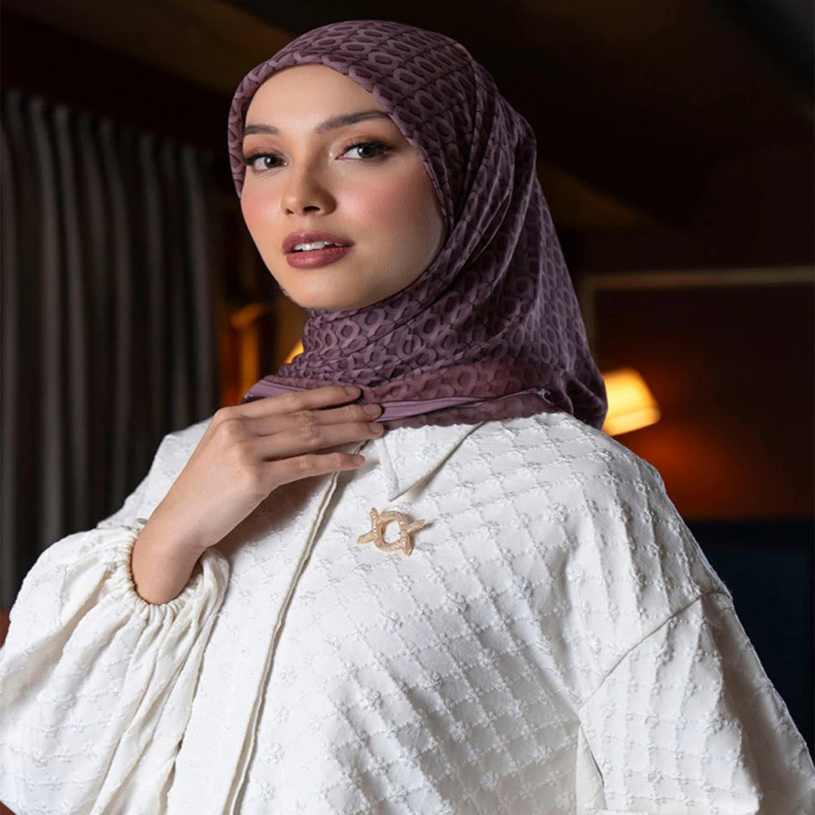 Elegant scarf with a timeless small monogram design in warm Cedar Wood tone