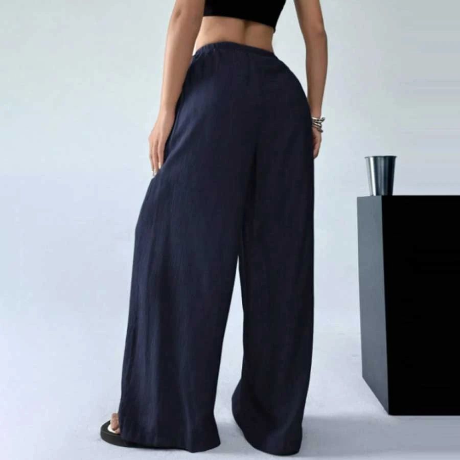 بنطلون واسع الساق عالي الخصر للنساء برباط خصر ملفوف، مصنوع من قماش منسوج قابل للتنفس، ملائم بشكل مريح، مثالي للارتداء غير الرسمي وشبه الرسمي