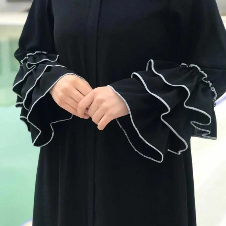 Elegant black ferace with ruffle sleeve details, ideal for daily wear and special occasions