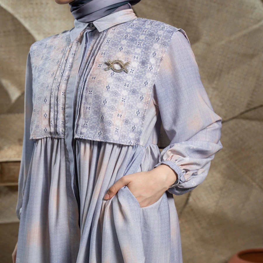 Elegant long dress in the fresh Arctic Sky shade, offering a refined and versatile style