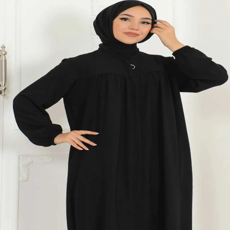 Elegant and modest Mevlana-cut black ferace from Oktayusta Collection, designed for everyday comfort with a flowing, graceful silhouette