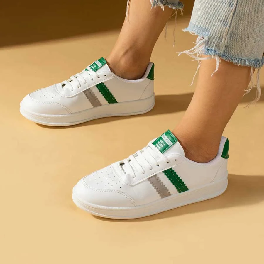 Pembe Potin White Green Women’s Sports Sneakers for women with lace-up closure and comfortable sole providing support, style, and casual everyday wear