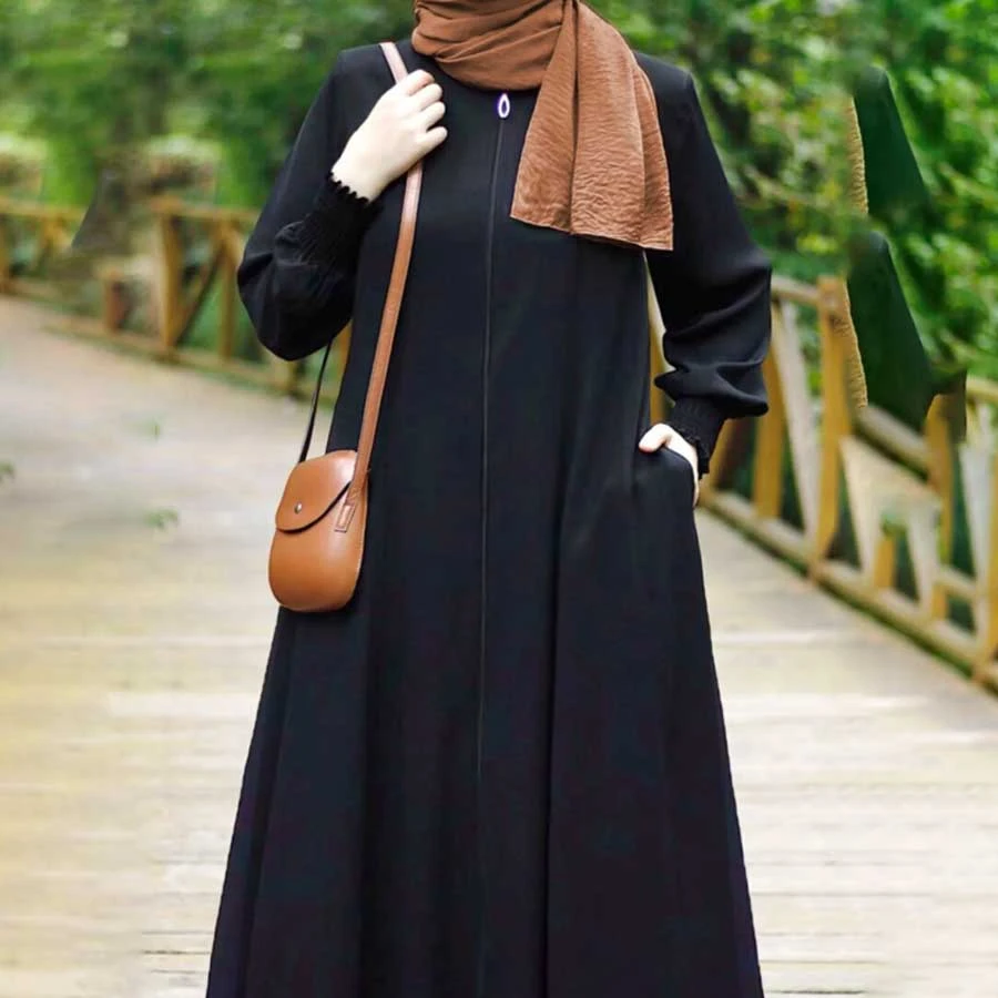 Flared Mevlana-style ferace in black, comfortable and stylish for daily wear