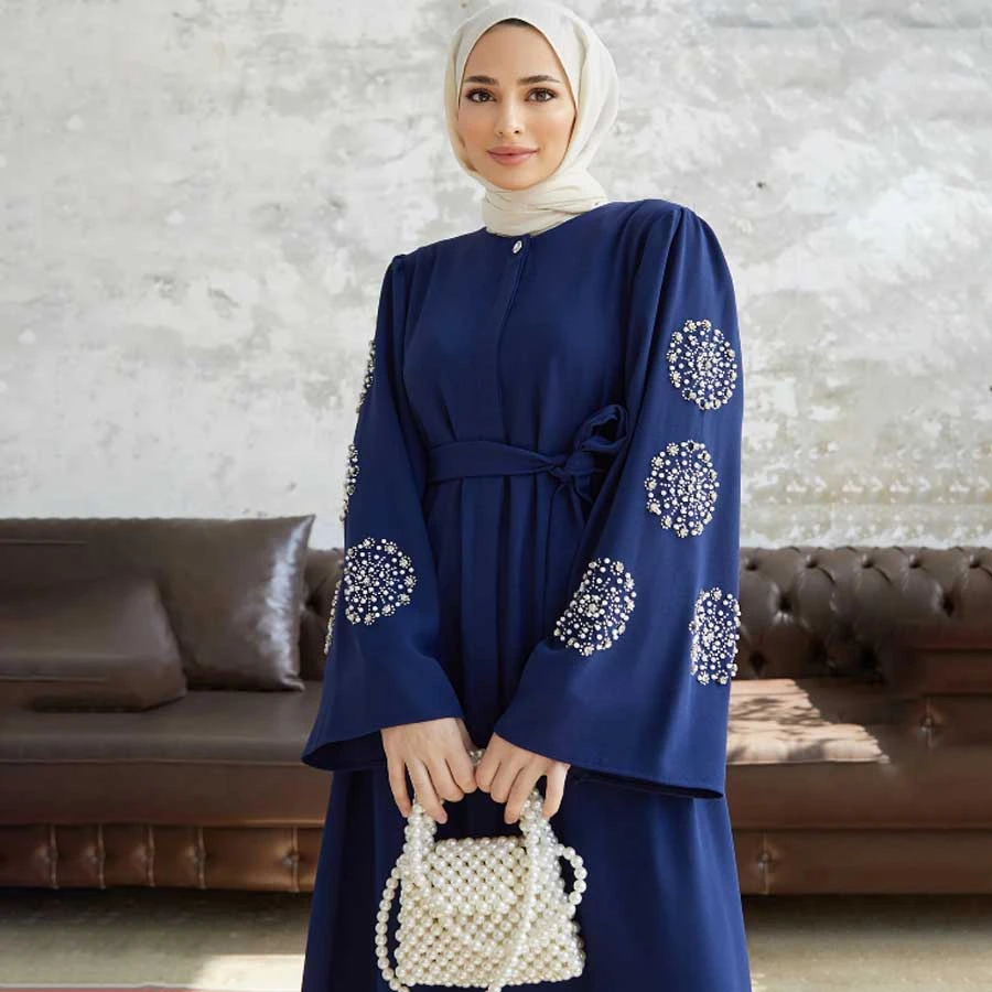 Luxurious abaya featuring elegant stone embellishments on the sleeves, crafted from soft premium fabric for a graceful and modest look