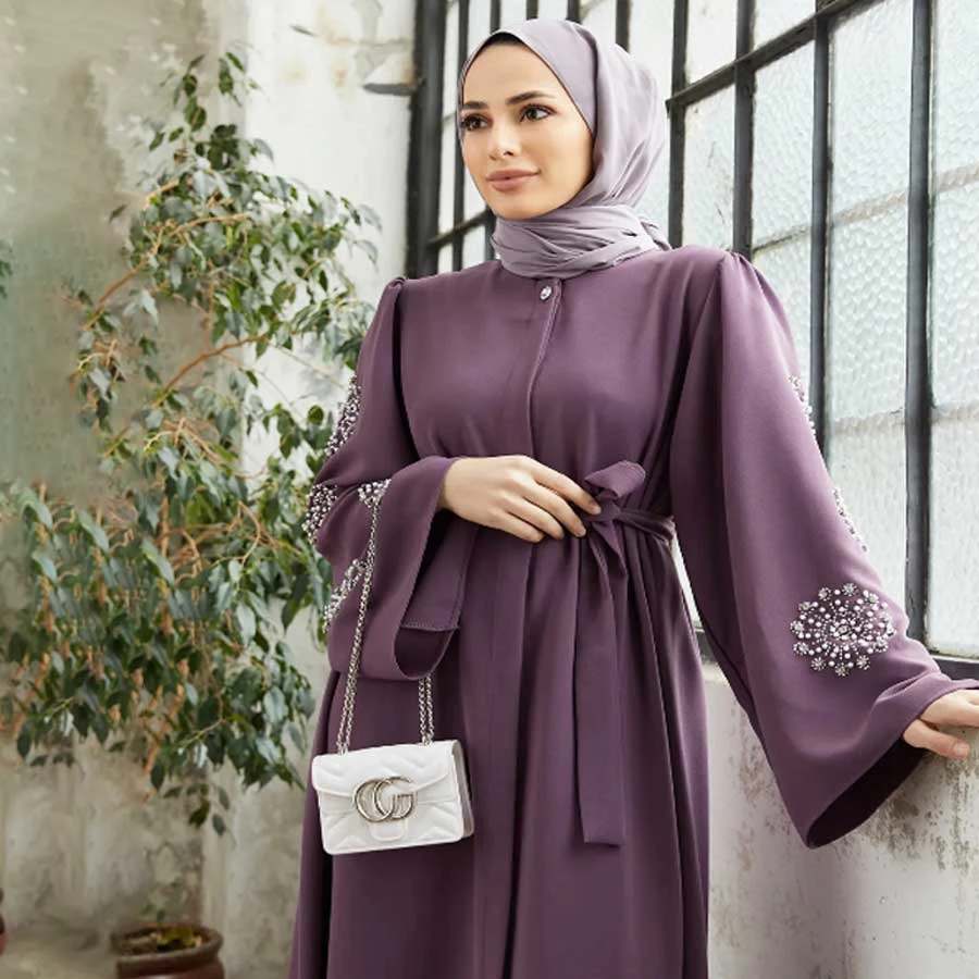 Elegant abaya with stone detailing on the sleeves, ideal for daily or special occasions