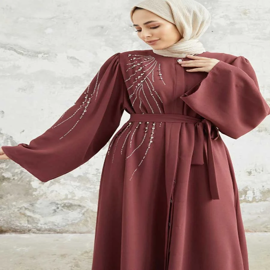 Abaya in dried rose color with stone details, perfect for elegant daily or special wear